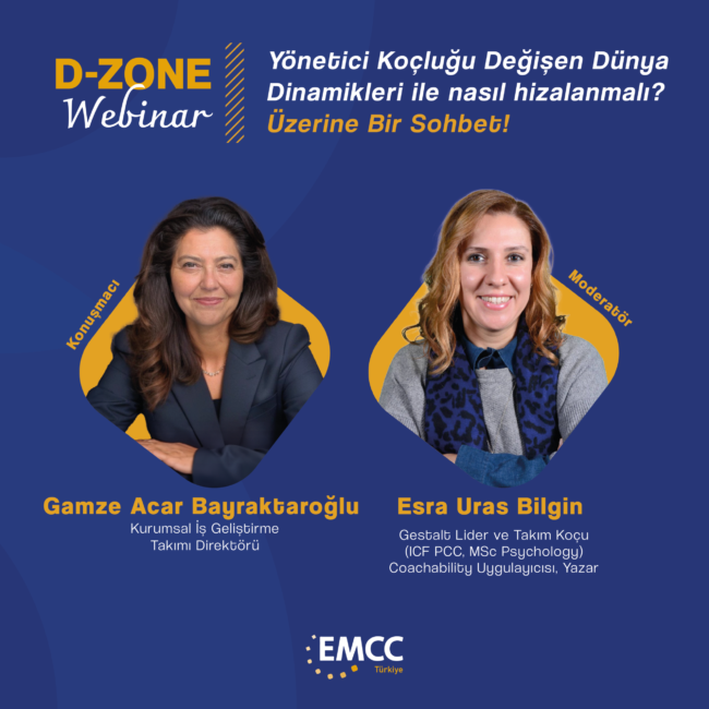Fiba Grup İnsan Kaynakları Direktörü ve EMCC Yönetim Kurulu Üyesi Sayın Aylin Yazgan İyicik’in konuk olacağı, moderatörlüğünü ise EMCC Yönetim Kurulu Başkanı, Yönetici ve Takım Koçu Sayın Demet Uyar’ın üstleneceği bu özel oturumda; liderlik yaklaşımlarının şirket kültürüne yansımalarını ve koçluk bakış açısının yarattığı farkı konuşacağız.